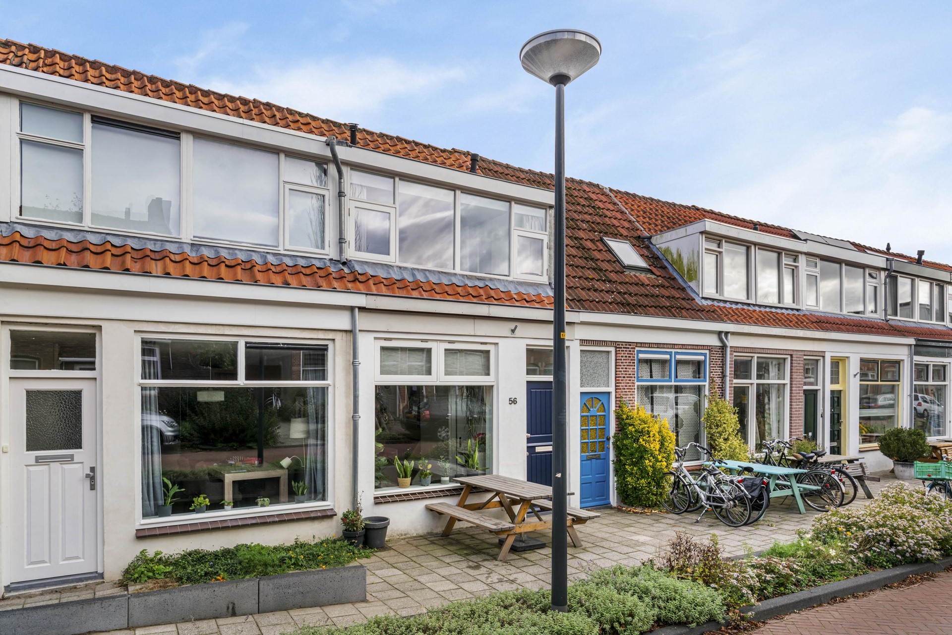De voorgelegen, brede stoep, met slimgeplaatste bloembakken geeft de straat een gemoedelijke uitstraling. Het geheel oogt verzorgd en past perfect in de karaktervolle omgeving. Eenmaal binnen bij nummer 56 speelt de intieme, open sfeer direct de hoofdrol. In de hal bevindt zich een keurig toilet, de meterkast en een plek voor jassen. De langgerekte woonkamer is opvallend licht en sfeervol. Aan de voorzijde is plek voor een zithoek met uitzicht op de straat die doorgetrokken kan worden naar de achterzijde waar de open keuken met de eettafel een warm, huiselijk gevoel geeft. De sfeervolle vloer loopt als een sterke basis door de hele leefruimte. De keuken, uitgevoerd in een rechte opstelling is praktisch én eigentijds. Natuurlijk voorzien van alle gemakken zoals een 5-pitsgaskookplaat, een combimagnetron, vaatwasser en een koelkast. Vanuit de keuken stap je direct de patio in. Een kleine buitenruimte waar je kunt zitten in alle privacy van je eigen huis. Ook is de bijkeuken bereikbaar vanuit de keuken waar de cv-ketel hangt, de wasmachineaansluiting is én extra opbergruimte. Een bijzonder praktische doorgang naar de achtergelegen kamer met meerdere gebruiksmogelijkheden. Niet alleen zou deze grote ruimte een verlengstuk van de woonkamer kunnen worden, ook een aangename werkplek aan huis, televisiekamer of zelfs derde slaapkamer. Deze extra kamer op de begane grond is een fijne plek die zich moeiteloos aanpast aan de wensen van de bewoners.