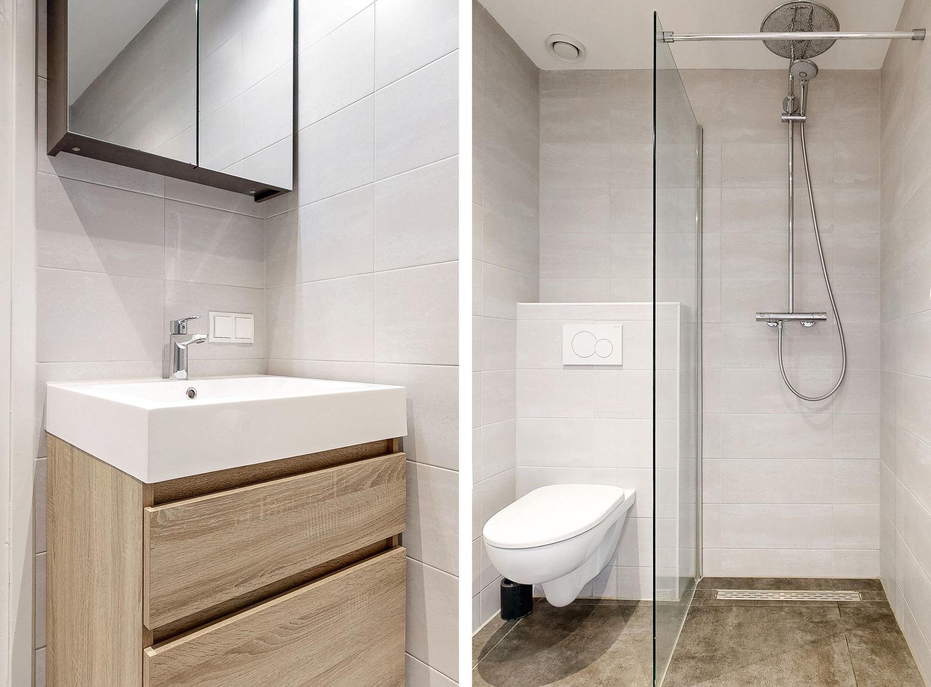- Moderne badkamer met toilet, inloopdouche en wastafelmeubel