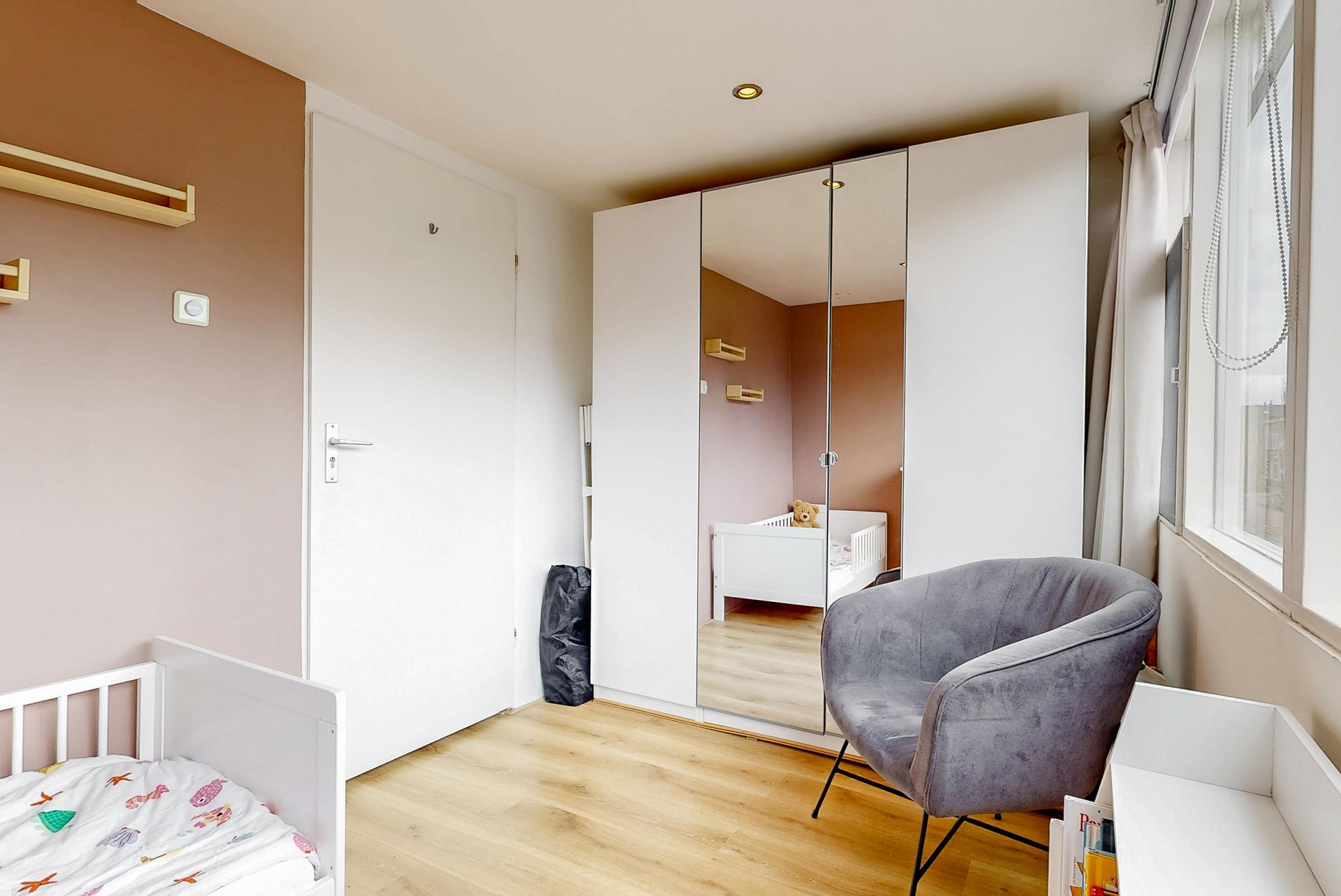 Op de eerste verdieping biedt de overloop toegang tot twee ruime slaapkamers, de badkamer en de vlizotrap naar de bergzolder. Beide slaapkamers liggen over de gehele breedte van de woning. De grote ramen laten hier volop licht binnen en zorgen voor een verrassend ruimtelijk gevoel. Aan de achterzijde ligt de ouderslaapkamer met openslaande deuren naar het dakterras dat, dankzij de rustige ligging, een perfecte plek is om te ontspannen en te genieten van de privacy en stilte zo dichtbij de binnenstad. Het dakterras is voorzien van een schaduwdoek voor de hete dagen van de zomer. De moderne, design badkamer is vernieuwd in 2020, ligt centraal op de overloop en is stijlvol en praktisch opgezet. Met een inloopdouche, een toilet, een wastafel met opbergruimte en een spiegelkast, biedt de badkamer alles wat je nodig hebt voor optimaal gebruiksgemak. De eerste etage is voorzien van airconditioning. De woning heeft een sedumdak, ook wel groendak genoemd, dat zorgt voor extra isolatiewaarde en bovendien bijdraagt aan de lokale biodiversiteit, wat vooral in stedelijke gebieden een mooie toevoeging is. Alles in dit huis is met aandacht onderhouden en in de afgelopen jaren met smaak vernieuwd. Geen klussen, geen concessies, gewoon wonen met sfeer, licht en karakter.