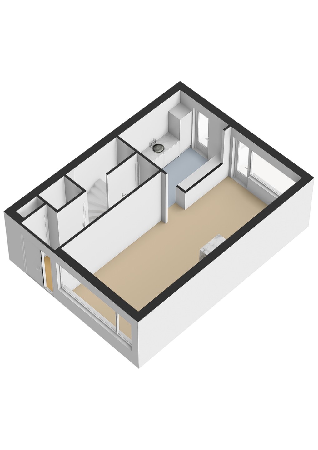 Bij binnenkomst treft u de hal met toilet, meterkast en trapopgang naar de eerste verdieping. De doorzonwoonkamer is heerlijk licht dankzij de grote ramen aan zowel de voor- als achterzijde. Vanuit de woonkamer heeft u direct toegang tot de zonnige achtertuin, die met een beetje creativiteit kan worden omgetoverd tot een groene oase.