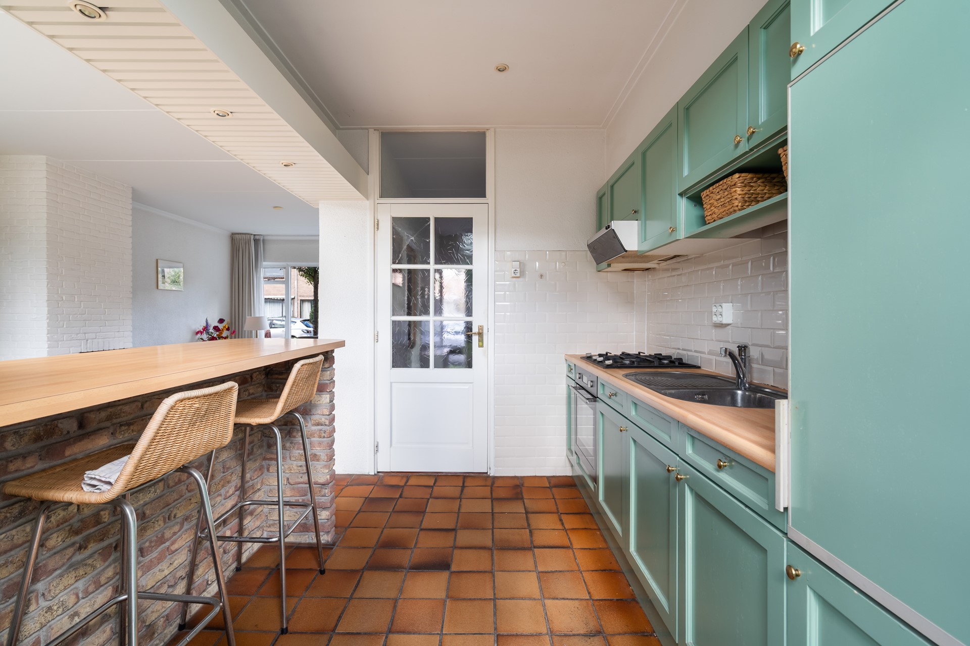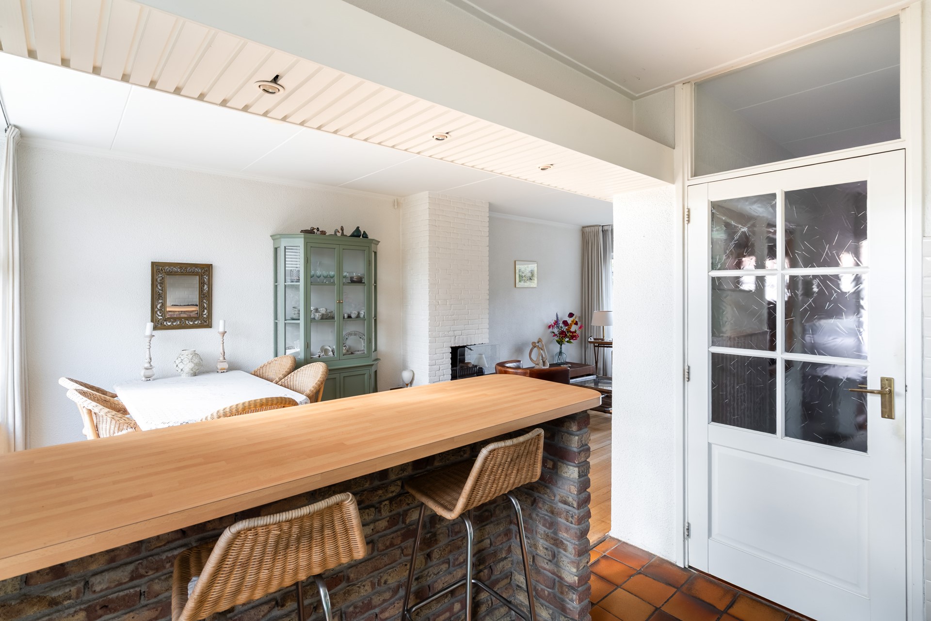 De open keuken is praktisch ingedeeld en voorzien van een baropstelling die de ruimte op een speelse manier verbindt met de woonkamer. Ook hier geldt: een update in stijl en afwerking geeft deze ruimte meteen een moderne uitstraling.